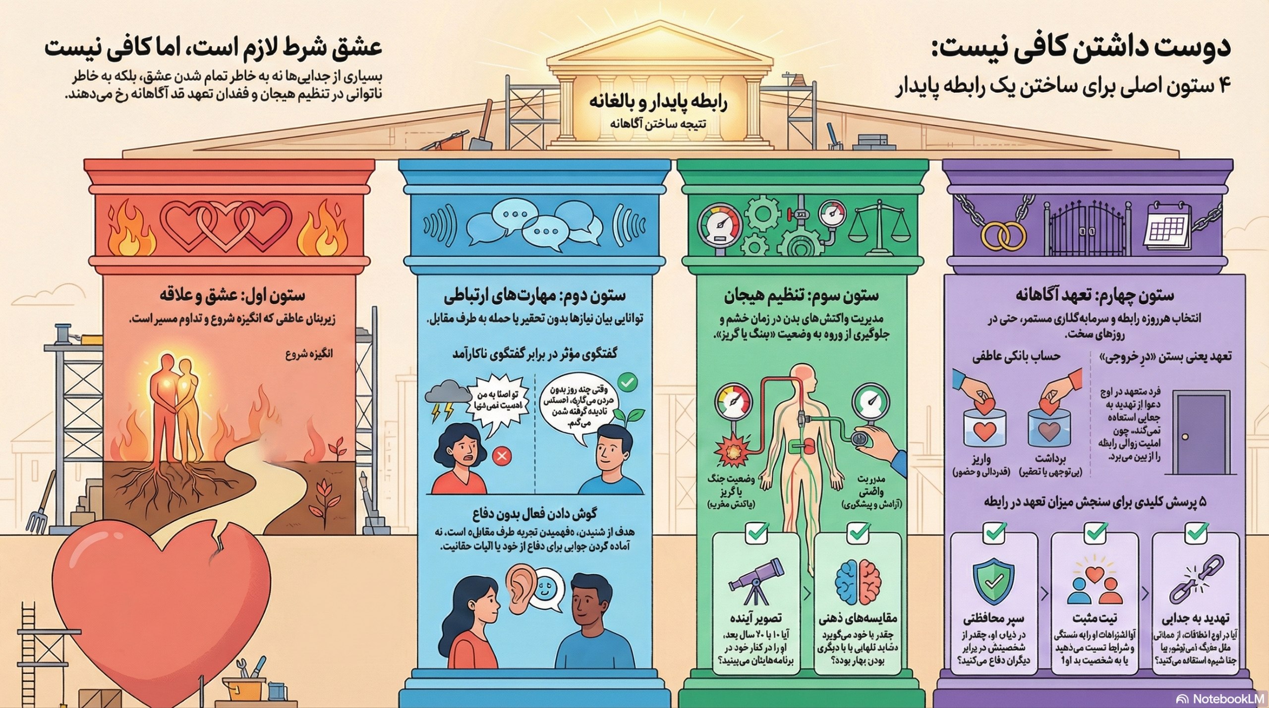 نادیدهگرفتن هرکدام از این ستونها، رابطه را در بلندمدت آسیبپذیر میکند.